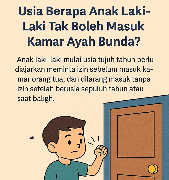 • Usia <7 tahun: Masih boleh masuk kamar, tapi mulai diajarkan mengetuk pintu.